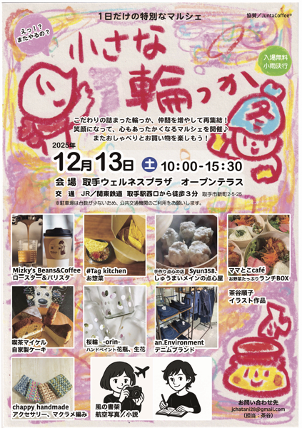 冬なのにあったかい、賑やかで、おしゃれじゃない、楽しいだけのマルシェになります。協賛には、一コマイラストでお馴染み、JuntaCoffee®︎も加わりました。あとは、各自準備を進めて体調を気をつけるのが大事です。